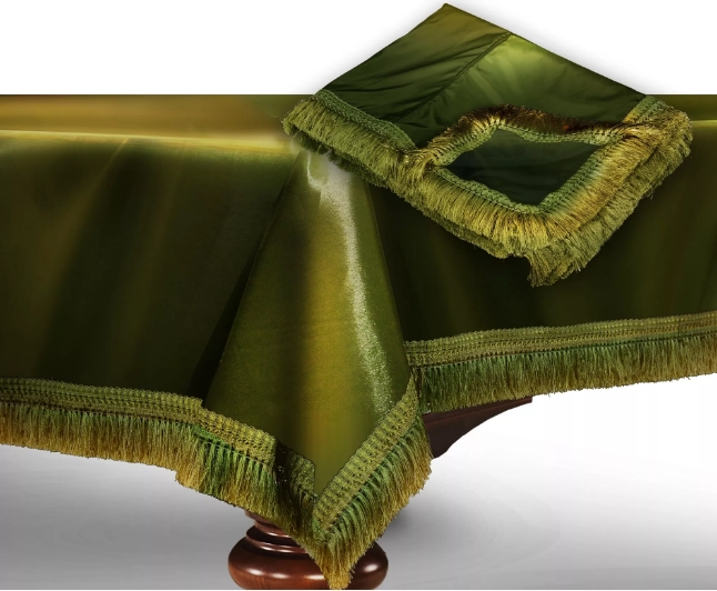 У нас вы можете приобрести специальное покрывало для бильярдного стола. Это очень стильное декоративное покрывало, которое выполняет не только свои основные защитные функции, но еще и декоративные, такое покрывало прекрасно украсит любое бильярдное помещение. Покрывало изготовлено из такого материала, как синтетика, а предназначено оно для бильярдного стола размером в 10 футов. Материал пропитан влагостойким веществом, которое не дает воде проникнуть сквозь полотно. У покрывала зеленый цвет и зеленая бахрома по краям.