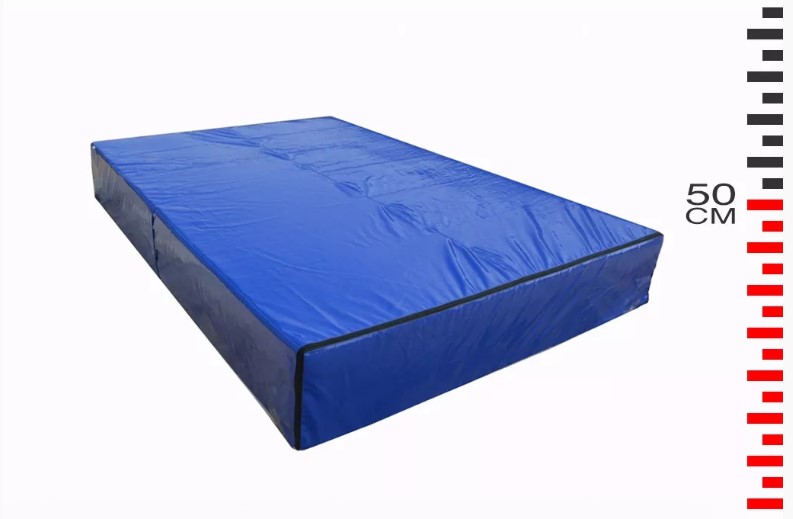Данный мат выполнен из армированного тента, он имеет толщину, которая составляет 50 см. Это очень качественное оборудование, которое может обеспечить страховку при проведении занятий по опасным видам спорта. К примеру, данный мат можно использовать при проведении занятий по акробатике или скалолазанию. Необходимое количество изделий должны быть расположены в тренировочной зоне, вокруг спортивных снарядов. Если человек упадет на мат, то наполнитель сможет качественно амортизировать удар и сделать его мягче.