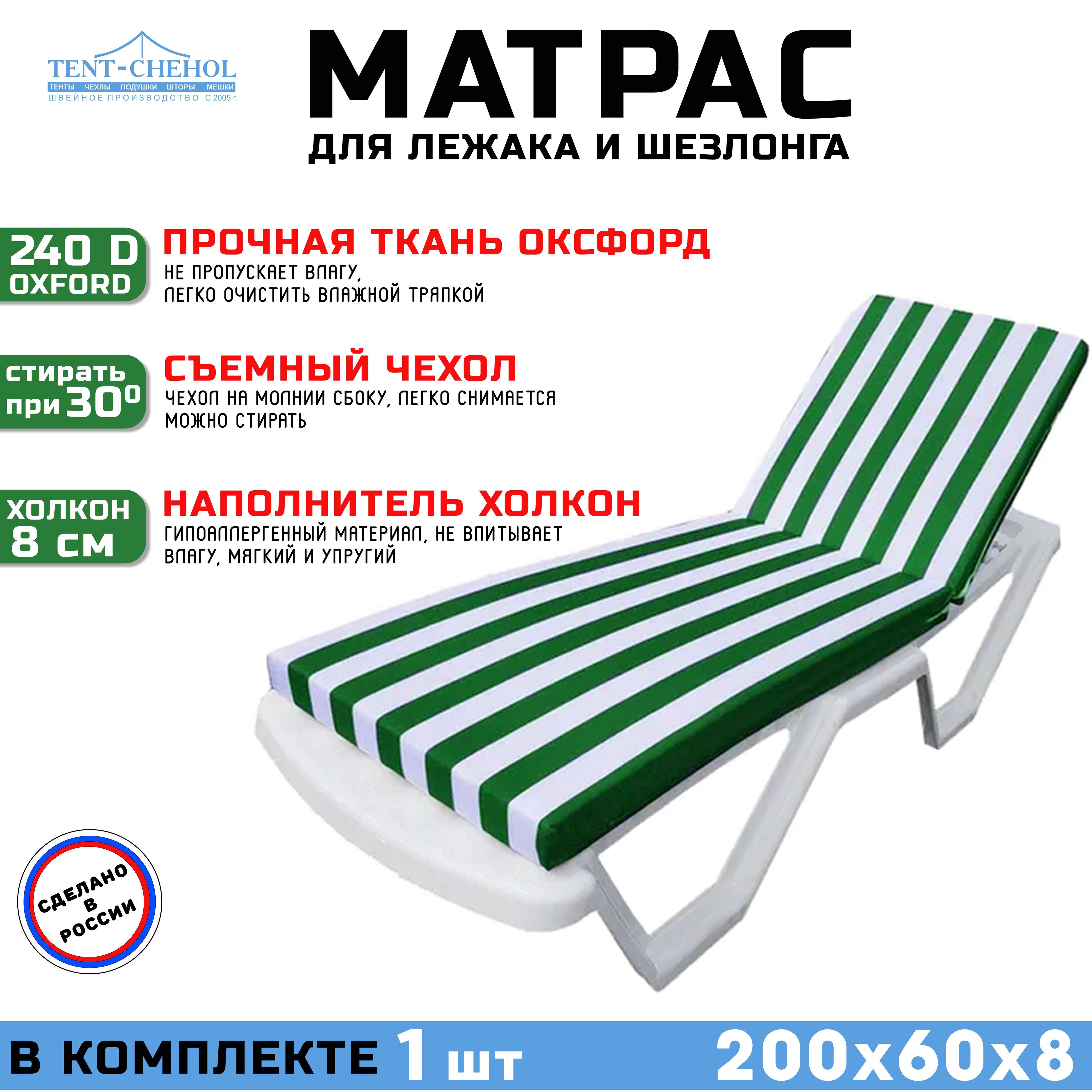 Купить Матрас для шезлонга и лежака 200х60х8 (бело-зеленый) цена 2500 руб. в Москве и СПб с доставкой по России