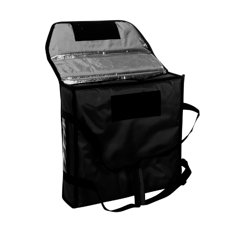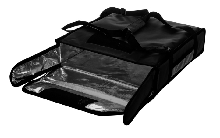 Мы предлагаем инновационный продукт, который соответствует абсолютно всем представленным требованиям, выглядит эстетично. При желании мы нанесем на изделие брендирование, и оно будет выглядеть так, будто это ваши собственные, брендовые сумки. Внутри изделия фольгированные, благодаря этому сохраняется необходимая температура. В качестве утепления используется листовой холлофайбер. Сумка отлично держит форму благодаря тому, что холлофайбер листовой, он содействует поддержанию формы. Размеры изделия - 350 мм х 350 мм х 100 мм. Цвет изделия - черный, у него есть вентиляция. Благодаря ей в сумке не скапливается конденсат, пицца не становится мокрой.